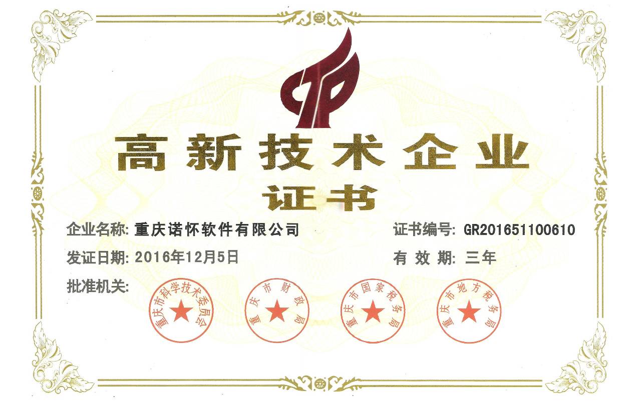 特大喜訊!諾懷軟件榮獲“高新技術(shù)企業(yè)”稱號