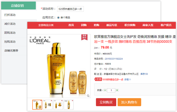 支持直降、滿減、組合購(gòu)買(mǎi)、折扣、秒殺、團(tuán)購(gòu)、限時(shí)搶購(gòu)等多種促銷方式